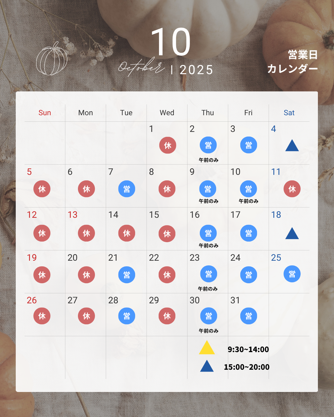 このたび、2025年8月以降当面の間の営業日時および施術担当者を変更させていただくこととなりました。
